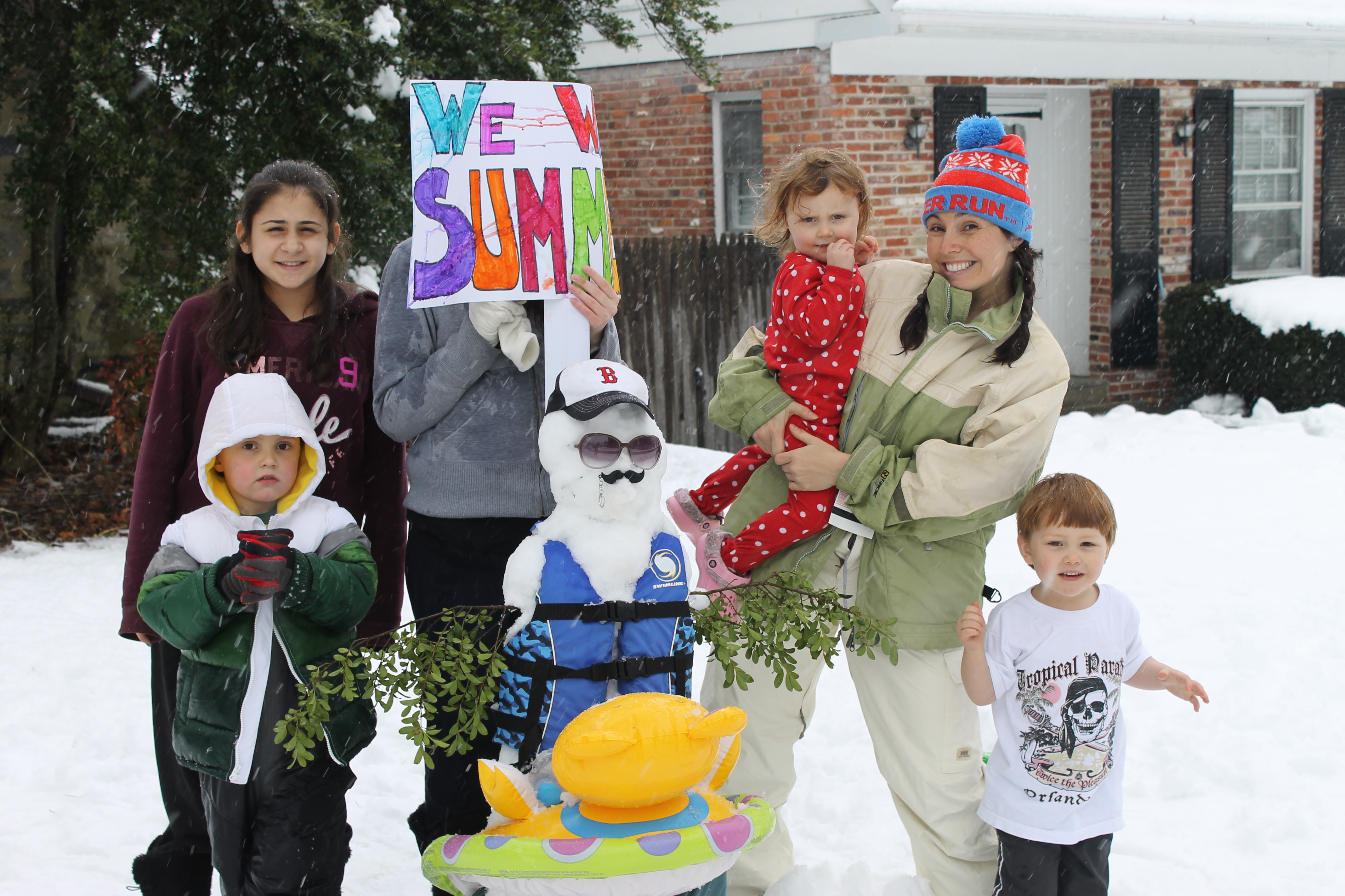 1. Built a SummerMan in honor of warmer times, complete with a written plea of “WE WANT SUMMER!”  *Note: this will be the one and only time we go out in the snow.  NOT. A. FAN. of toddlers + bundling + 20 degrees.  But at least we got a picture.