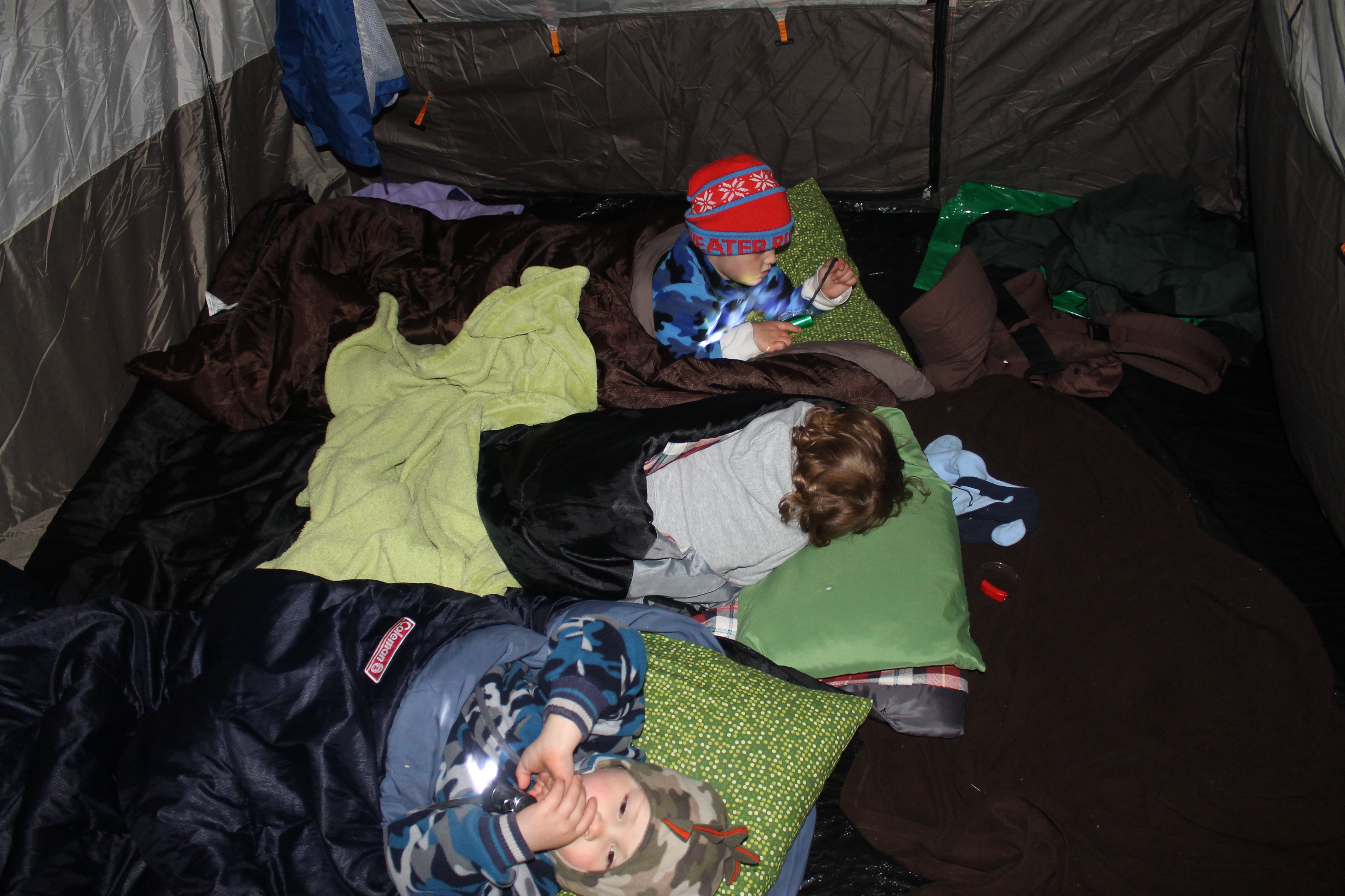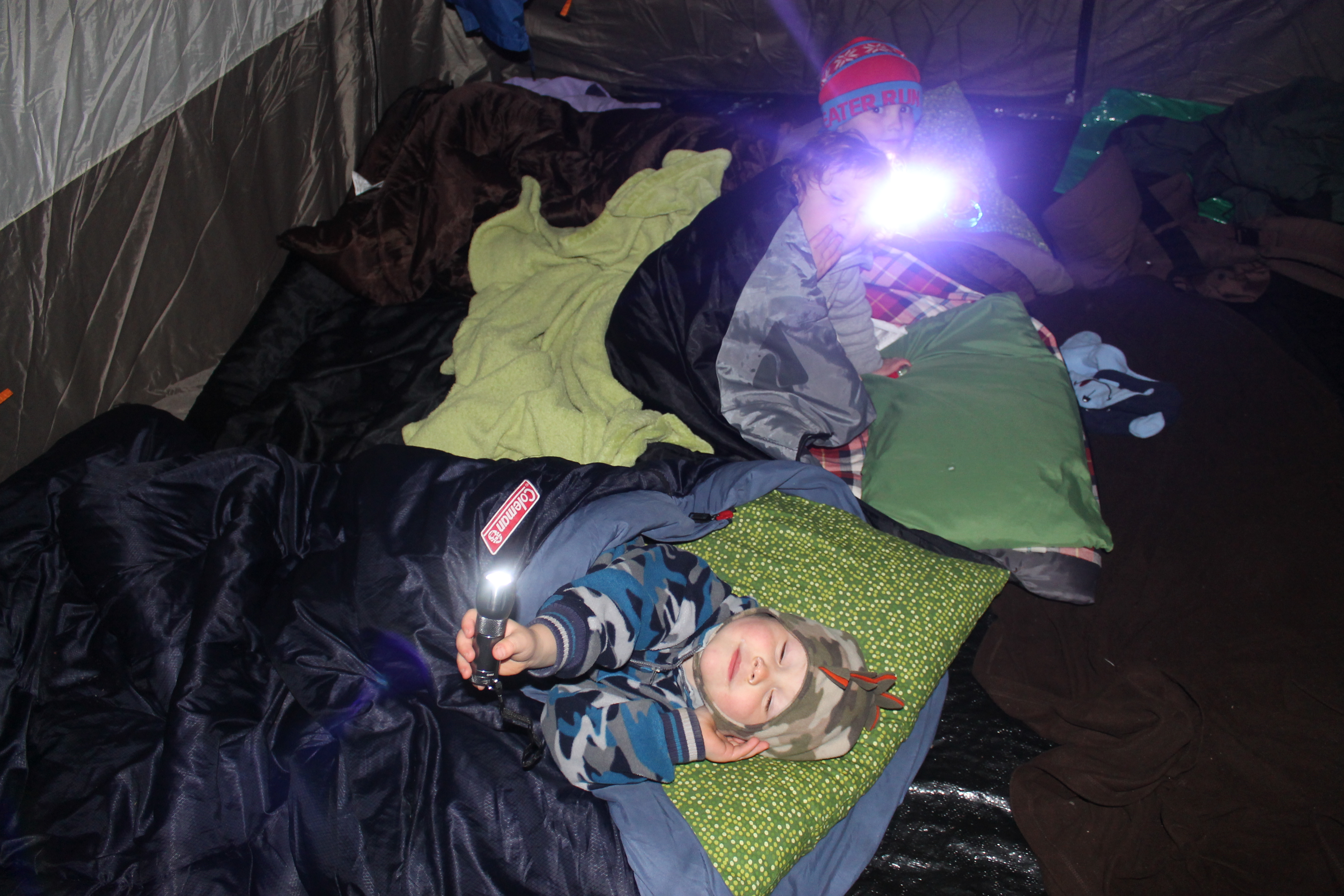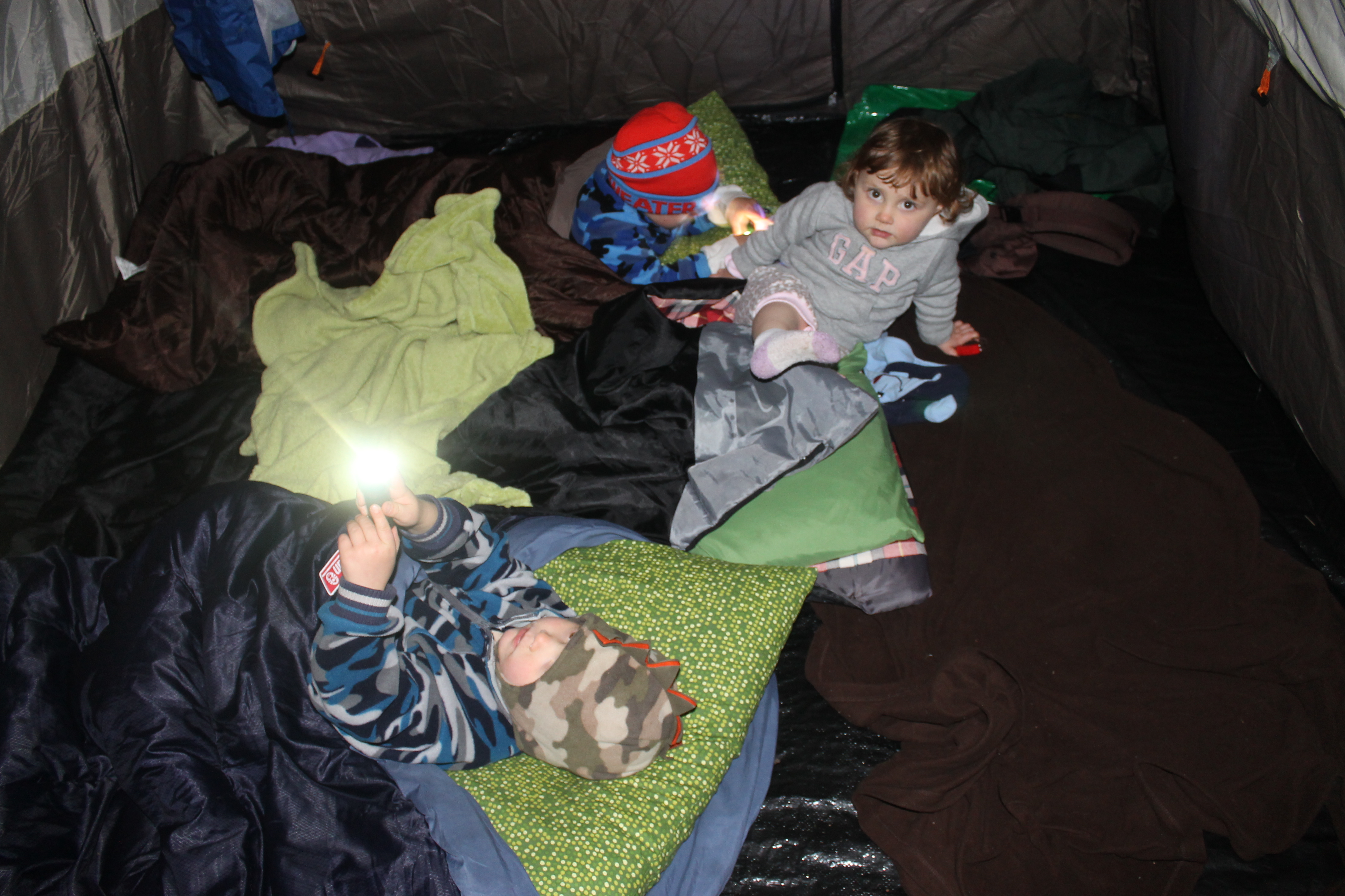 Ok, so we eventually pile into our new, awesome (water RESISTANT as opposed to water PROOF) 12 person tent and hunker down for the night. Dinner consisted of yogurts and crackers, and bedtime stories contained strange animals in the woods, which I realize now didn’t exactly set us up for success.