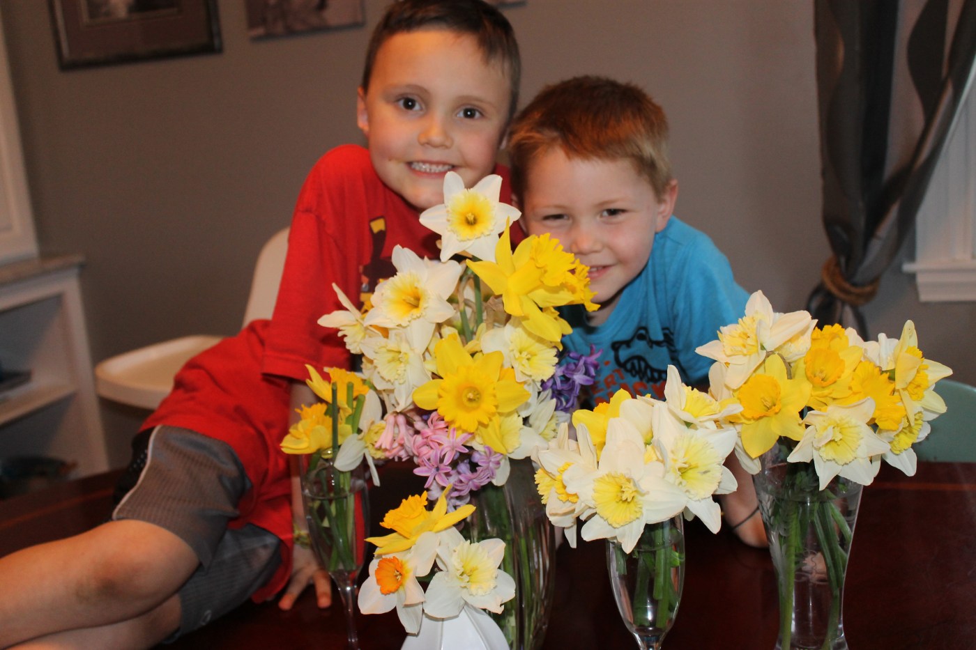1. How true, Tommi…Well done, Mom…wish I’d used such wisdom all those years of child-rearing…Your crystal vase arrangement is lovely, by the way, and the flowers are gorgeous! The boys are wonderful! M & M…………